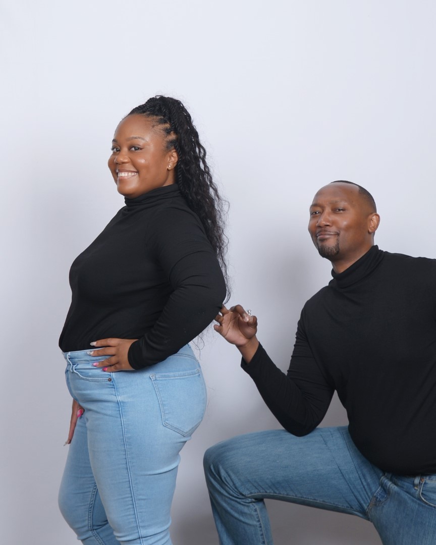 Now for the proposal. Picture this: an 80's matching pair themed photoshoot. Turtlenecks, awkward poses, vintage vibes, the whole thing. Right at the end, mid-photo session, probably looking like we just stepped out of a 80's sitcom, I dropped to one knee. She said yes. Obviously. Eight years, countless date nights, and one unforgettable photoshoot later, we're making it official. And we want you there to celebrate with us. Let the good times roll.